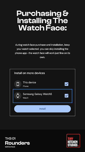 - Step 3: Now search for TKS 01 Rounders Watch Face App on Google playstore. Find the official App from Tiny Kitchen Studios developer and click on the Install button.