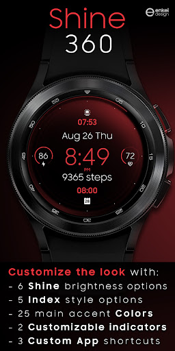 Shine 360 - modern watch face is on the top of the list of Personalization category apps on Google Playstore. It has got really good rating points and reviews. Currently, Shine 360 - modern watch face for Windows has got over 1+ App installations and 0 star average user aggregate rating points.