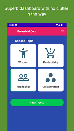 Proverbial Quiz is on the top of the list of Productivity category apps on Google Playstore. It has got really good rating points and reviews. Currently, Proverbial Quiz for Windows has got over 1+ App installations and 0 star average user aggregate rating points.