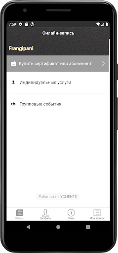 - Step 3: Now search for Frangipani App on Google playstore. Find the official App from YCLIENTS developer and click on the Install button.