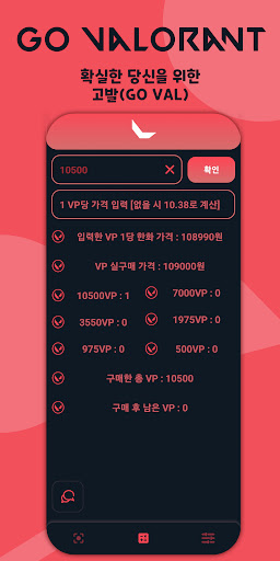 - Step 6: Once you click on the Install button, 고발(GO VALORANT) - VP 계산, 조준점 will be installed automatically on Bluestacks. You can find the App under list of installed apps in Bluestacks.