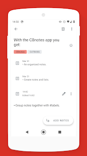 CBnotes - Notes and Threads is on the top of the list of Productivity category apps on Google Playstore. It has got really good rating points and reviews. Currently, CBnotes - Notes and Threads for Windows has got over 500+ App installations and 0 star average user aggregate rating points.