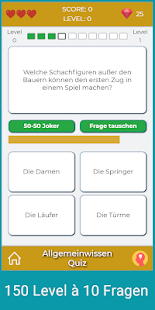 Allgemeinwissen Quiz App - kostenloses Quizspiel is on the top of the list of Trivia category apps on Google Playstore. It has got really good rating points and reviews. Currently, Allgemeinwissen Quiz App - kostenloses Quizspiel for Windows has got over 10,000+ Game installations and 0 star average user aggregate rating points.