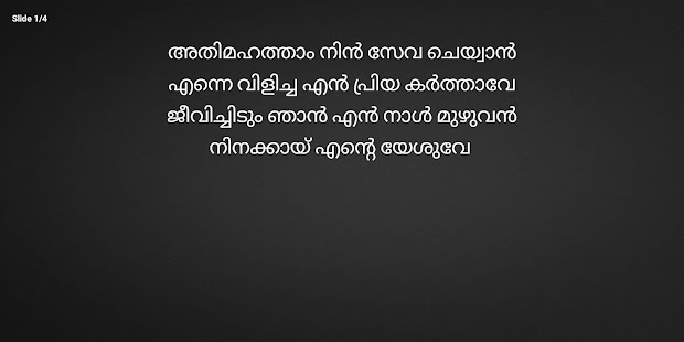 Malayalam Christian Songs is on the top of the list of Books & Reference category apps on Google Playstore. It has got really good rating points and reviews. Currently, Malayalam Christian Songs for Windows has got over 100,000+ App installations and 0 star average user aggregate rating points.
