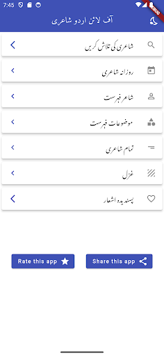 Status Urdu Poetry Offline is on the top of the list of Books & Reference category apps on Google Playstore. It has got really good rating points and reviews. Currently, Status Urdu Poetry Offline for Windows has got over 0+ App installations and 0 star average user aggregate rating points.