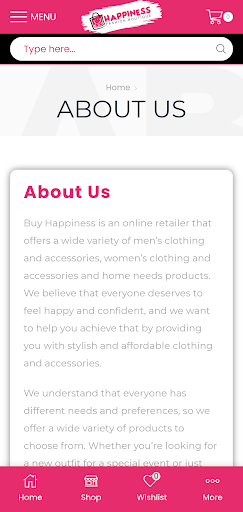 Buy Happiness. is on the top of the list of Shopping category apps on Google Playstore. It has got really good rating points and reviews. Currently, Buy Happiness. for Windows has got over 50+ App installations and 0 star average user aggregate rating points.