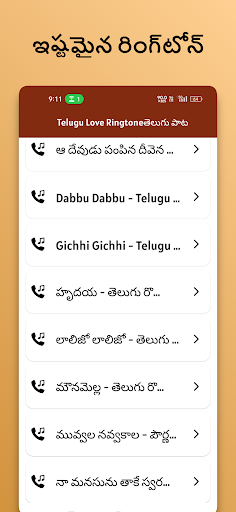 Telugu Love Ringtoneతెలుగు పాట is on the top of the list of Music & Audio category apps on Google Playstore. It has got really good rating points and reviews. Currently, Telugu Love Ringtoneతెలుగు పాట for Windows has got over 100,000+ App installations and 0 star average user aggregate rating points.