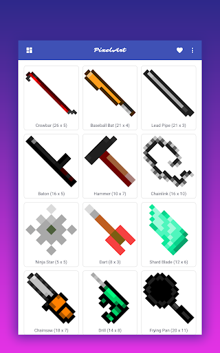 How to draw pixel game weapons is on the top of the list of Art & Design category apps on Google Playstore. It has got really good rating points and reviews. Currently, How to draw pixel game weapons for Windows has got over 10,000+ App installations and 0 star average user aggregate rating points.
