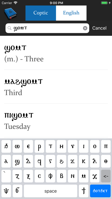 Coptic-English Dictionary is 1.99 Reference app, developed by Mina D. Makar. Latest version of Coptic-English Dictionary is 3.2, was released on 2017-10-09 (updated on 2020-05-15). Overall rating of Coptic-English Dictionary is 4.7. This app had been rated by 49 users.