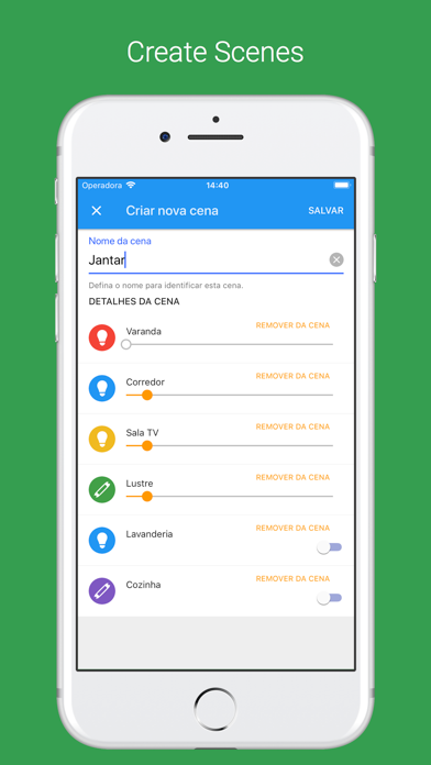 | ● control. Scenes tab: - In Scenes tab, you can create presets for lighting and power plugs, and activate them with a touch. - With scenes you can create a lighting environment to watch a movie, for a romantic dinner, set hallways and bathrooms dimly lit at bedtime, among others. * Places -The Places feature lets you set the location of your Place in the app. |