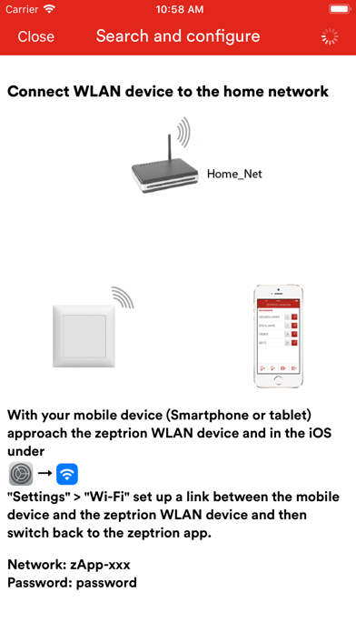 | ● ***App features*** •Straightforward, intuitive Feller operating concept •Rapid navigation via favourites, rooms and functions •Time-saving personal settings such as function names, symbols, sequences •User definable scenes for sophisticated flexibility •Demo version possible (no WLAN connection) •Create your own favourites and scenes ***Hardware features*** •The zeptrion App works in the same WLAN-based home network as the Feller zeptrion WLAN devices intermediate module 2C and extension unit 4C •zeptrion WLAN intermediate module 2C: easy to install between cavity back boxes and face plate sets, compatible with all zeptrion inserts from 2008 and onwards •zeptrion WLAN extension unit 4C: extension unit, max. |