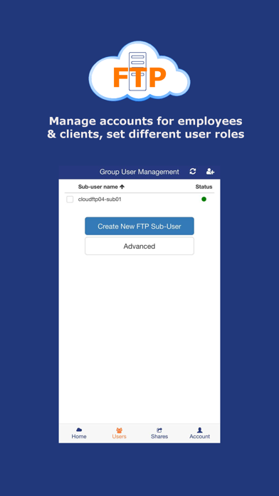 | ● Each user will have his (her) own login credential and FTP root folder. |