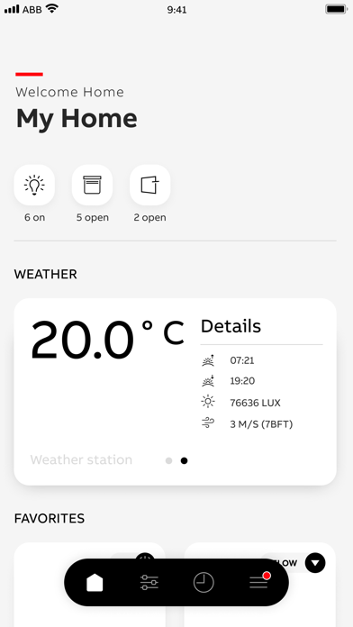 | ● Note: This app only works with a ABB-free@home® Smart Home System with an installed firmware version 2.5.0 or higher. ----------------------------------------------------------------------------------- The ABB-free@home® Next app was developed from scratch so that you can operate your ABB-free@home system quickly and intuitively. It enables the programming and operation of your free@home system. |