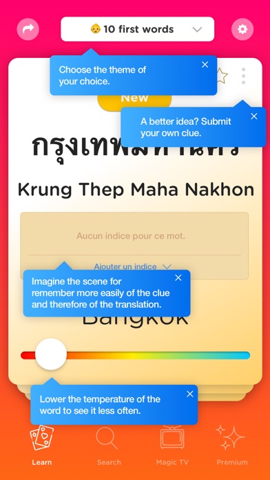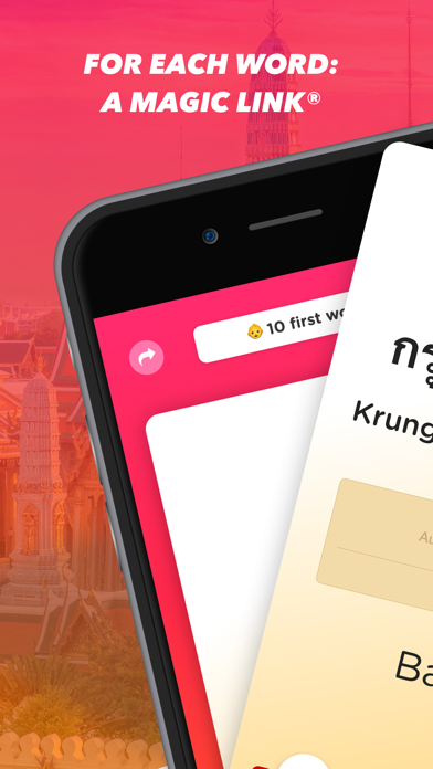 | ● With the MAGIC THAI® Method, you learn Thai 10x faster! The MAGIC THAI® method puts into practice all the most advanced techniques of memorization. *** Magic Links™ Method *** For each word each we offer a mnemonic index to help you remember its translation. |