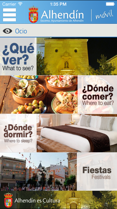 | ● Aparecerá zona y hora tanto de salida como de llegada. CALENDARIO - Infórmate de todos los eventos que tendrán lugar en tu municipio, para que no te lo pierdas!! GALERÍA - Exposición de Fotos y Vídeos de Alhendín. INFORMACIÓN TURÍSTICA - Pequeña reseña de nuestro pueblo, explicando su historia y monumentos en cuatro idiomas. ALERTAS - (AVISOS Y CALENDARIO) Notificaciones Push de nuestro municipio. |