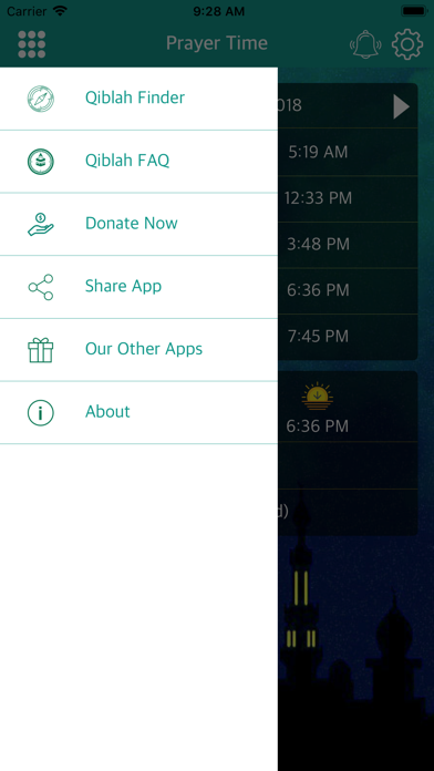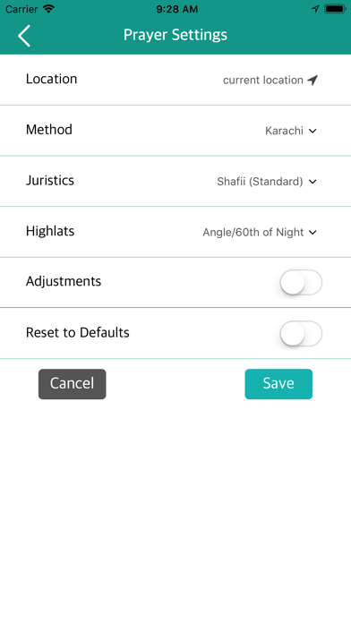 | ● Another unique feature of this app is that it can detect high magnetic fields that affect the accuracy of the direction finder. Unique App features : Prayer Calculation Methods supported are : Jafari (Ithna Ashari) Karachi (University of Islamic Sciences, Karachi) ISNA (Islamic Society of North America (ISNA)) MWL (Muslim World League) Makkah (Umm al-Qura, Makkah) Egypt (Egyptian General Authority of Survey) Tehran (Institute of Geophysics, University of Tehran) Jusristic Methods supported are : Shafii (Standard) Hanafi Higher latitude Adjustments supported are: No Adjustment Middle of Night 1/7th of Night Angle /60th of Night -Individual minute adjustments ranging from +9 to -9 minutes for each prayers. - Supports 24 Hour / 12 Hour Prayer time formats. - Supports Automatic Day Light Savings - Application is capable of fetching Automatic Timezone of users current location to ensure correct prayer times. |