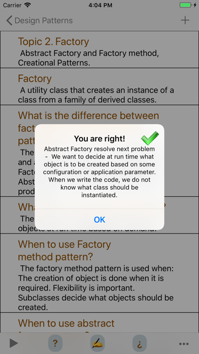 | ● Learning by Listening! With current app you can read and write, listen, pass tests and learn faster, in result you will get fun and obtain more knowledge! Application Design Patterns Interview include next themes: Topic 1. |