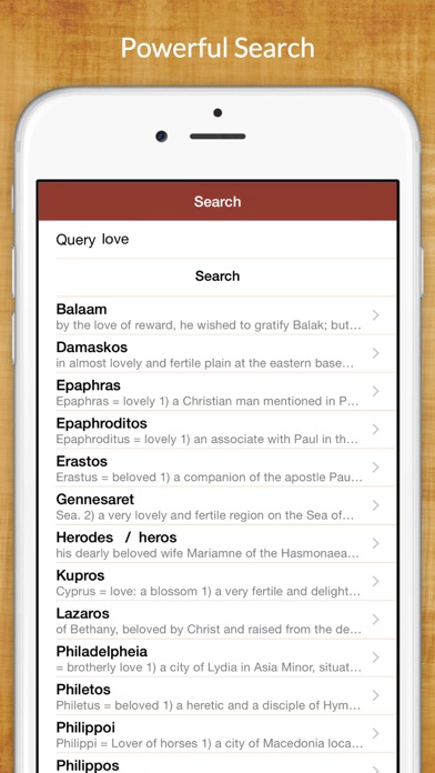 | ● Discover full meanings, Strongs number relations, part of speech and English transliteration. |