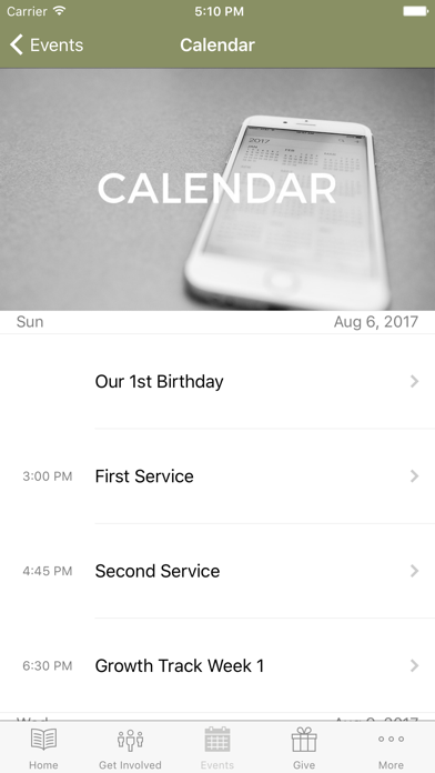 | ● You can use it to find many ways to get involved at the church, take sermon notes and see upcoming events. |
