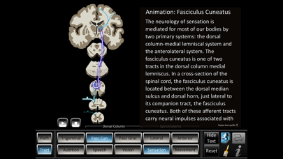 | ● Animations - audition listen and balance, speech communication and corticobulbar, vision,sensation and movement views.. Tracts: structure ID - audition listen and balance, speech communication and corticobulbar, vision, sensation trigeminal, dorsal column and spinothalamic, movement rubrospinal, reticulopinal, tectospinal and corticospinal views. |