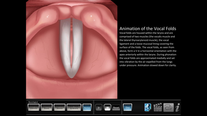 | ● A normal animated vocal fold illustration, structure ID and three normal videos help patients and students both learn and contrast pathologies against normal vocal folds. |