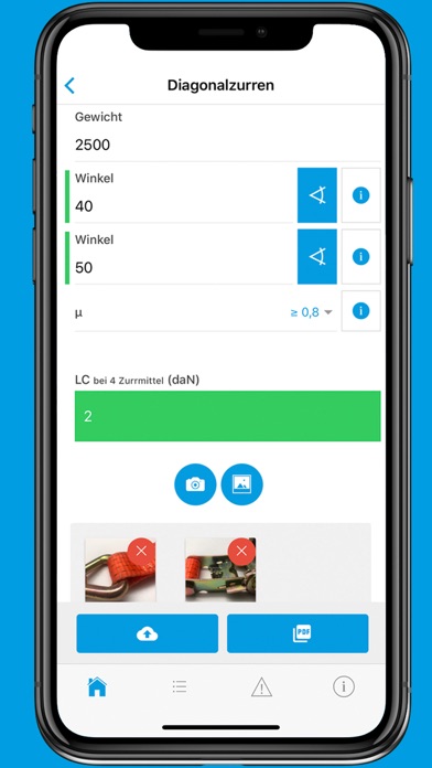 | ● In tie-down lashing, the BRUGG Lashing App calculates the minimum number of lashing system from the weight of the load, lashing angle, given stretching force and coefficient of friction entered. |