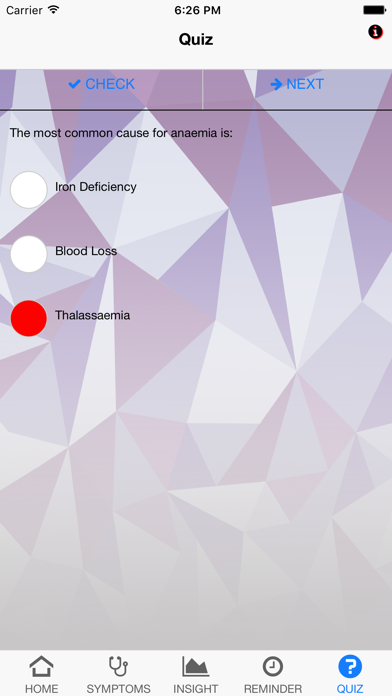 | ● Besides, the user can test its knowledge regarding Anaemia in an amusing way through a little and funny quiz. |