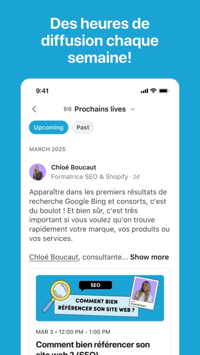| ● Avec Camp de base, accède à de nombreuses opportunités : + + LIVES AVEC DES EXPERTS + + Un programme de lives quotidiens pour t’apporter des connaissances sur un thème précis (création d’entreprise, communication, marketing, comptabilité, juridique, SEO, …) ou pour des partages d’expériences avec des personnes “qui l’ont fait”. |