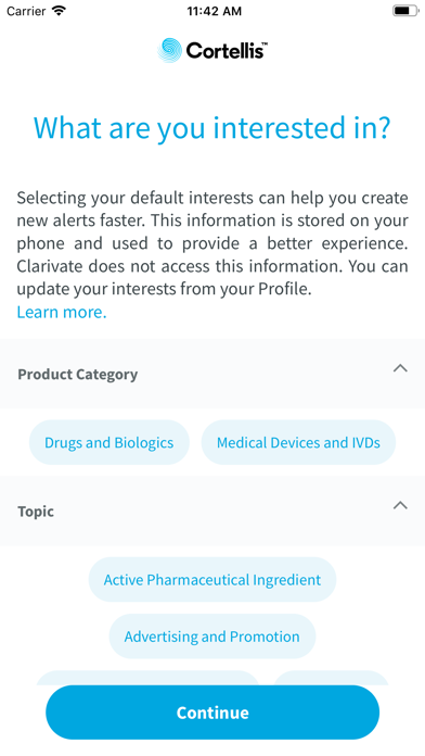 | ● Sharing & collaboration Share new and updated regulatory documentation with colleagues directly via the app. Favorites Save favorite documents in your own offline library for convenient access. Cortellis platform synchronization Automatic synchronization with your existing and new alerts. |