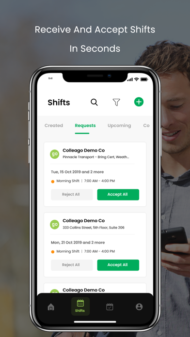 | ● Colleago is a real-time work availability and shift booking app which allows you to share your work availability with your employers and managers to improve your potential to pick up more shifts. |