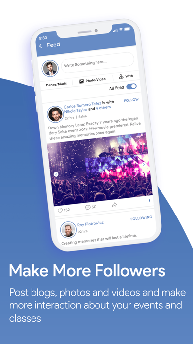 | ● It serves dance enthusiasts of all kinds. It serves dancers through ▪ Searching and finding the dance events, classes and festivals around them by smart map functionality. ▪ Dance events ticket booking. ▪ Participate in social feed about dance where they can ⁃ Follow their favorite professional dancers. ⁃ Post blogs, photos and videos about dance. ⁃ Tag their dance friends. ⁃ Interact with people who have the same passion. ▪ Vote for their favorite dance professionals and dance videos in Dancero challenges. Dancero Also serves dance professionals through: 1. Listing them in Dancero database and search engine. a. |