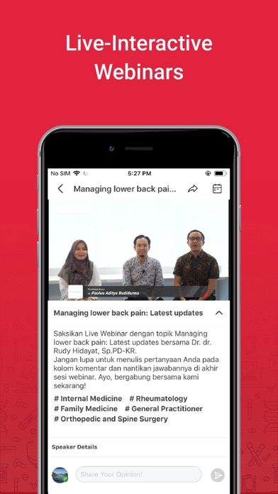 | ● Live & Interactive Webinars Watch medical webinars from key opinion leaders discussing variety of specialized medical topics. |