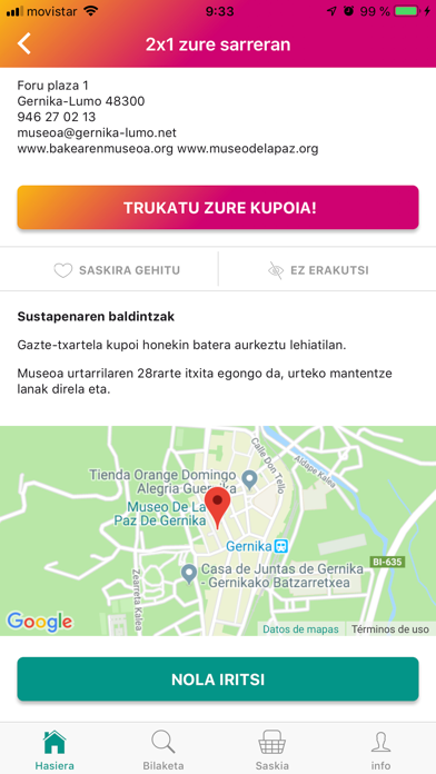 | ● Kupoia erabiltzeko ezinbestekoa da Gazte-txartela eta NANa aurkeztea aplikazioko kupoiarekin batera, horrela establezimenduak balidatu egingo du. |