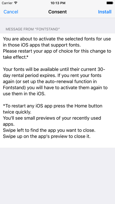 | ● Fontstand Your font rentals in iOS Welcome to Fontstand for iOS – the standalone app that allows you to synchronize your Fontstand for OS X font rentals for use on your iOS device. |