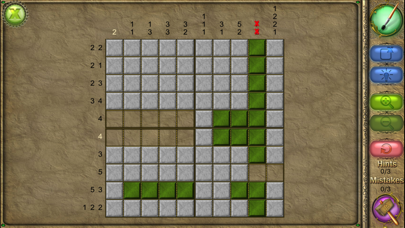 Play this puzzle *compulsively*. :-/ Attractive graphic design with Asian elements against an antique brown background. The antique design elements might be accentuated with more vivid contrasts and possibly more options added for variety. Pleasant sounds, although the loud brass GONG announcing a mistake is little annoying. It would be very helpful for the game boards to have larger squares to be able to play 20 x 20 games without squinting and trouble highlighting squares (cramped, clumsy fingers). Enjoy the game!