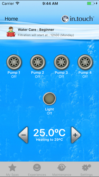 | ● Control the functions of your hot tub from your iPad, iPhone or iPod Touch with in.touch. |