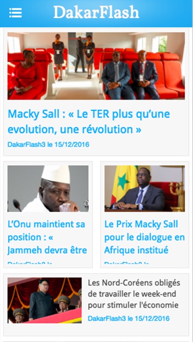 DakarFlash is Free News app, developed by Yonema SA. Latest version of DakarFlash is 1.5, was released on 2014-11-18 (updated on 2016-12-16). Overall rating of DakarFlash is 5. This app had been rated by 1 users.