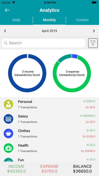 | ● Everything you need at your fingertips to manage expenses and budgets. You can create more than one account. Now in 9 different languages: English, Portuguese, French, Spanish, Russian, Japanese, Chinese, German and Hindi Other features are creating or changing records, adding new categories, or deleting old ones, and they will be immediately deleted. Key features that make tracking of expenses powerful: - Easy to use user interface. - Manage multiple accounts. - Manage categories if the patterns do not work for you. - Select the type of payment: cash, credit or debit card. - Be synchronized securely using your own Dropbox account. - Export records to PDF file or EXCEL sheet. - Choose the report period. - See your spending distribution on the nice and informative chart. - Analyze your daily or monthly expense. - Select your currency. - Backup and export data in one click. Safe means? - The application stores user data only on local phone storage. - The application does not send your data to the cloud. - The app does not share your data to any third party. - The application does not have any back-end server or any cloud processing directly associated with your data. If you have any problems about how to use it or ideas on how to improve it, feel free to send us an email. |