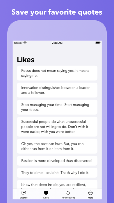 | ● Share the quotes as text, images, or directly to Instagram stories. |