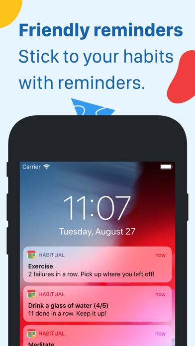 | ● With the help of motivating streaks, daily advice, and friendly reminders, the daunting task of forming new habits will soon be a breeze. Habitual will help you focus on the tasks at hand, whether that relates to losing weight, waking up earlier, working out or doing your breathing exercises. |