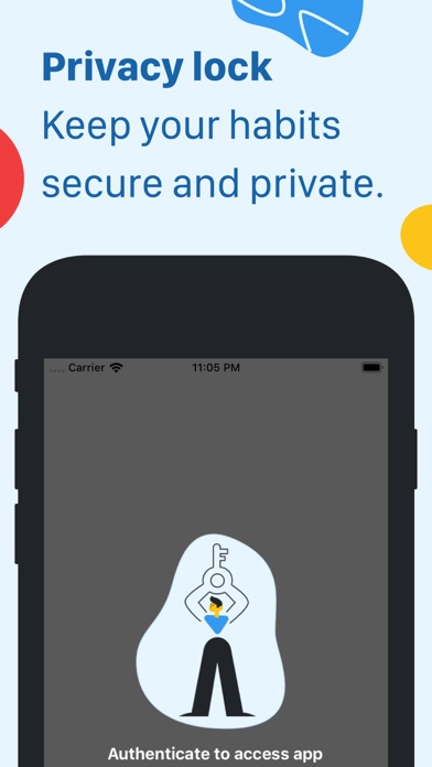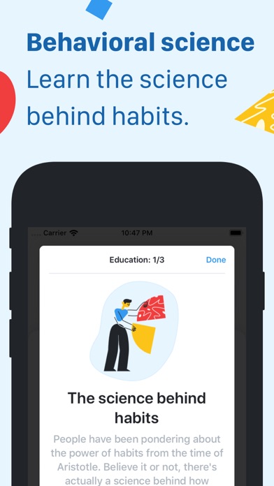 | ● Learn little by little with the daily tips or jump straight into the education program. • Dark mode (premium): Rest your eyes with our dark theme. • Privacy lock (premium): Keep your habits secure and private. • Backup your data: Signup to keep your habits safe. -- Premium plan -- Habitual is free to use, but if you want to bring out your full potential, you might want to go premium. |