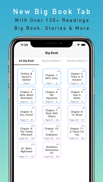 | ● The app also features a sobriety calculator, a good selection of AA literature, and the complete Big Book text 164 pages. |