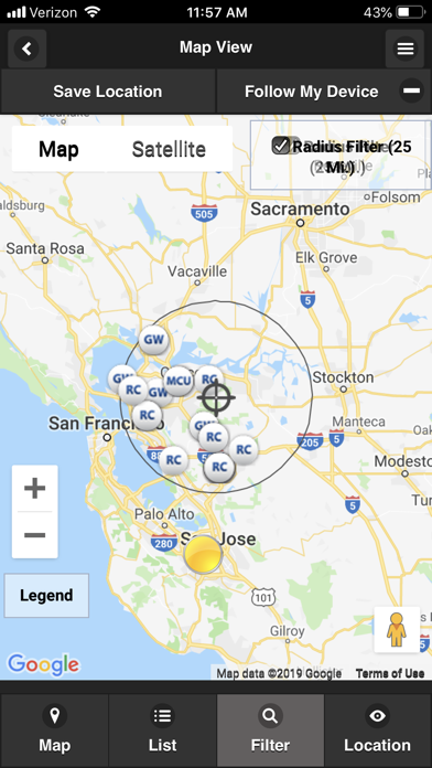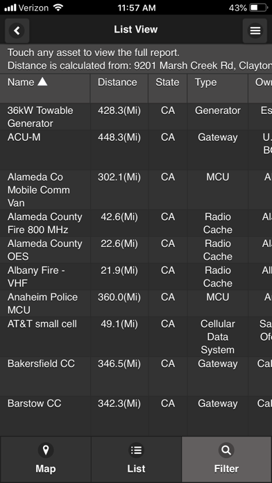 | ● CASM Finder’s intuitive graphical user interface is tailored for your mobile device and presents information from the CASM database in both a Map and List View, making it easy to locate public safety radio assets such as radio caches, towers, repeaters, and gateways. |