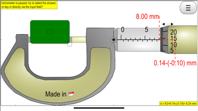 | ● Pro Version thank you for your support. https://itunes.apple.com/us/app/micrometer-simulator-pro/id1237535074?ls=1&mt=8 Free Version https://itunes.apple.com/us/app/micrometer-simulator/id1164367611?ls=1&mt=8 An open source physics at Singapore simulation based on codes written by Fu-Kwun Hwang and Loo Kang WEE more resources can be found here http://iwant2study.org/ospsg/index.php/interactive-resources/physics/01-measurements Introduction Micrometers use the principle of a screw to amplify small distances that are too small to measure directly into large rotations of the screw that are big enough to read from a scale. |