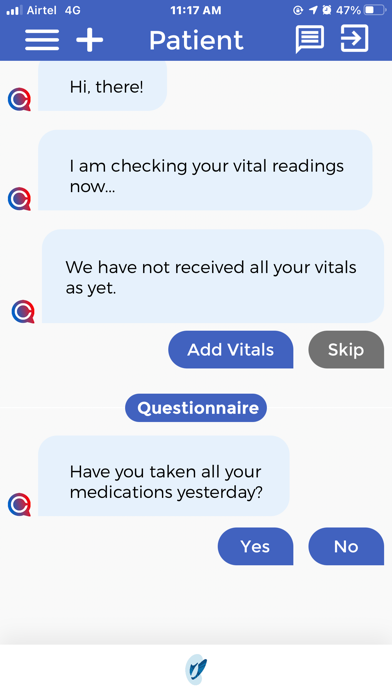 | ● You just talk to Sami™ and answer her questions and follow her reminders, like to take your medication or record your vitals, such as your weight that day. |