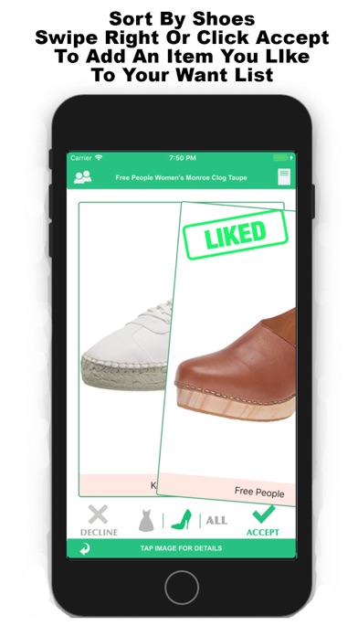 | ● Swipe your way to style and create your ultimate fashion list - with many products from Amazon and major stores and brands such as Calvin Klein, Fee People, Haute Hippie, French Connection, Aqua Swim, Jade Swim, and more! Thousands of dresses, bathing suits, bikinis, swimsuits, swimwear, tankinis, boots, bags, sweaters, shoes, skirts, jeans, workout clothes, jewelry, and more! Share your Want List (top left menu) with family and friends via built-in app functions such as post to Facebook, email, text, and share through a link to your own personal Fashion List Website. While viewing thousands of fashion items - sortable by buttons available on bottom middle of screen - Swimsuits, Dresses, and ALL - swipe right or click Accept to add an item to your Online Shopping List. |