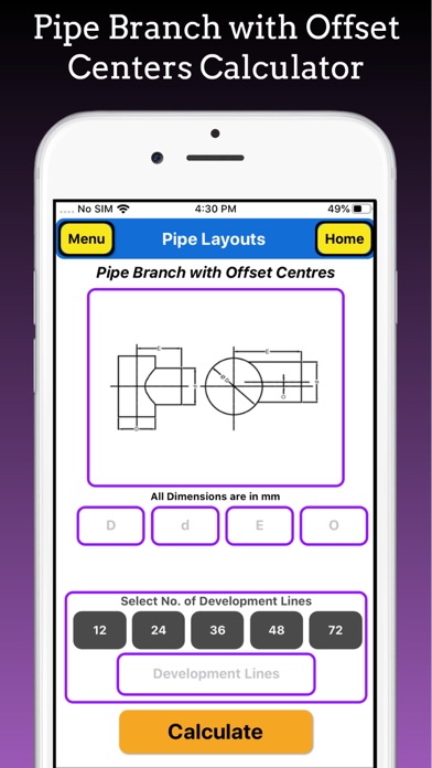 | ● Branch Pipe Layout App build to Get Flat Pattern Layout or Fabrication Layout for Plain Pipe or Shell, Pipe to Pipe Intersection at 90 Deg with Equal Diameter, Pipe to Pipe Intersection at 90 Deg. |