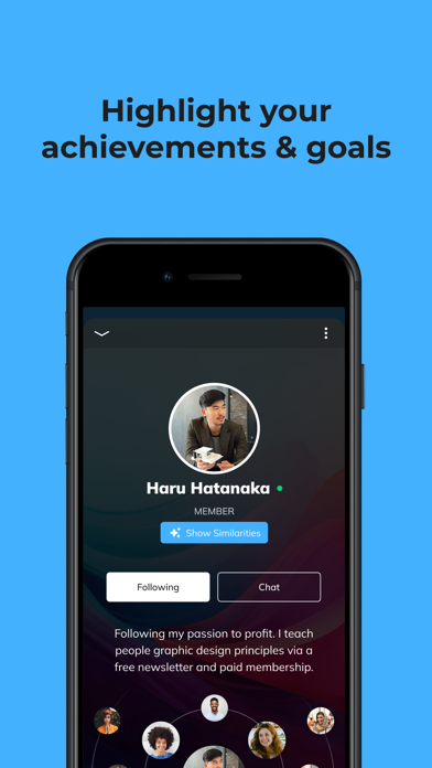 | ● + + You can create a custom profile, chime in on public feeds, and RSVP to events. |