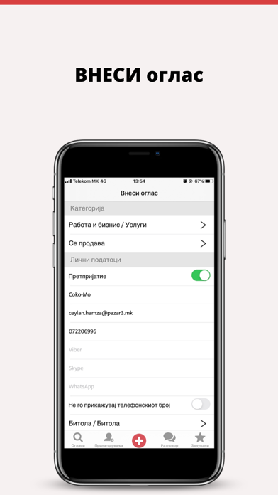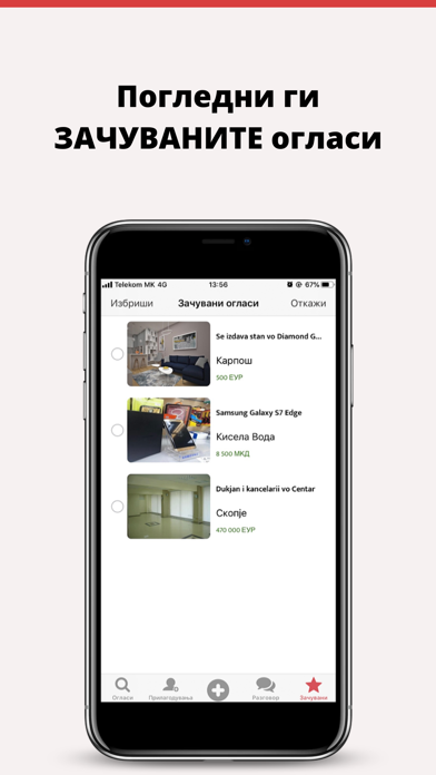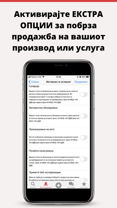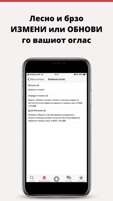 | ● Зачувајте ги пребарувањата од интерес, како и огласите кои Ви се допаѓаат и споделете со пријател! Имате предмети кои не Ви требаат? Нудите некаква услуга или работа? Огласувајте и продавајте брзо и лесно во само три чекори: 1. |