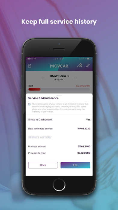 | ● Quickly order roadside assistance • Check a cars history with CarVertical • Track penalty points • Manage personal documents like ID, drivers license, and Green Certificate in the app! Get expiration reminders too! • Register as many vehicles as needed! The best solution for any owner of a CAR, MOTORCYCLE, TRACTOR, BUS, ATV, TRUCK, VAN, TRAILER, CARAVAN, CAMPERVAN, BICYCLE or SEMITRAILER! -> Safe Document Storage & Management Manage, store safely & share your vehicle documents like: • Insurance policies • Technical Inspections • Road tax payments • Vignettes • Maintenance & Service Reports • Registration certificate • Vehicle Identification Card (VIC) • Personal ID • Drivers License • and up to 10 custom documents of your choice! Upload all your documents and have them always at hand! -> Reminders & Alerts Set expiration dates for each document and start receiving reminders 30 days before they expire and keep receiving them weekly until expiration day, so you are always up to date! -> With Movcar, you will never forget to: • Change tires • Prolong your insurances • Pay your annual taxes • Buy new vignette • Renew your technical inspection • Homologate your extinguisher or medical kit • Schedule another maintenance checkup You will never miss an expiration date, never pay a fine! -> Buying or selling a used car? Always check the history of any vehicle before buying it and avoid costly surprises! Immediately get a report and find out about: • Vehicle service history, • Hidden damage report, • Mileage rollback, • Historical photos, • Multiple owners, • Theft records, • Common faults of each model, • Other useful information. -> Tire Management Register all your tire sets in the app - without any limits. |